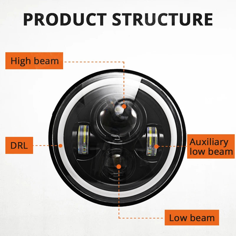 7-дюймовые светодиодные фары для мотоцикла, дневные ходовые огни H4, вспомога...