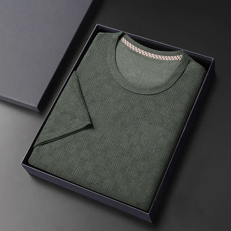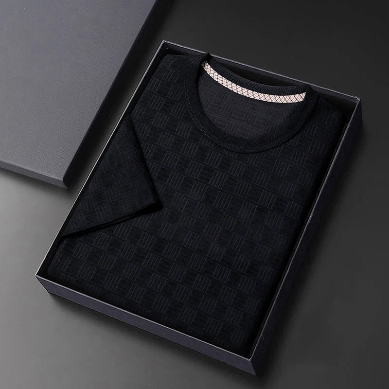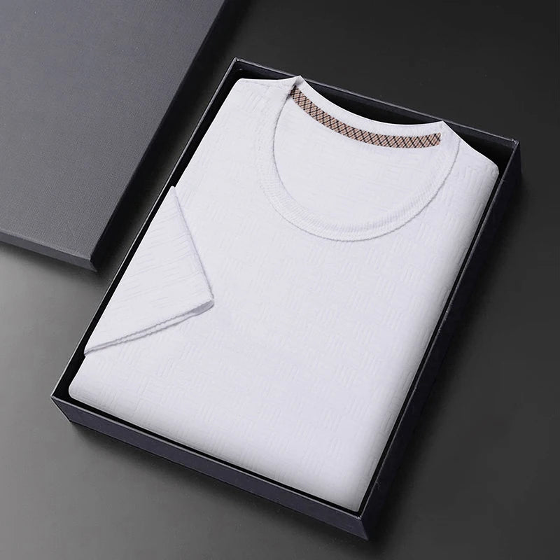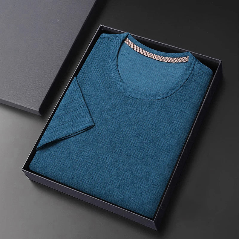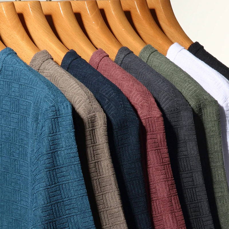 8-цветная мужская повседневная жаккардовая футболка с короткими рукавами и кр...