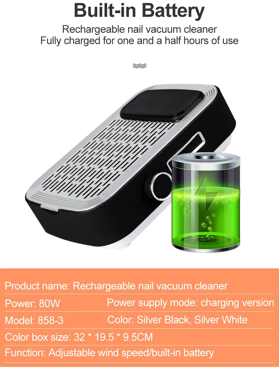 Мощный пылесос для ногтей 80 Вт, устройство для снятия геля и педикюрной пыли