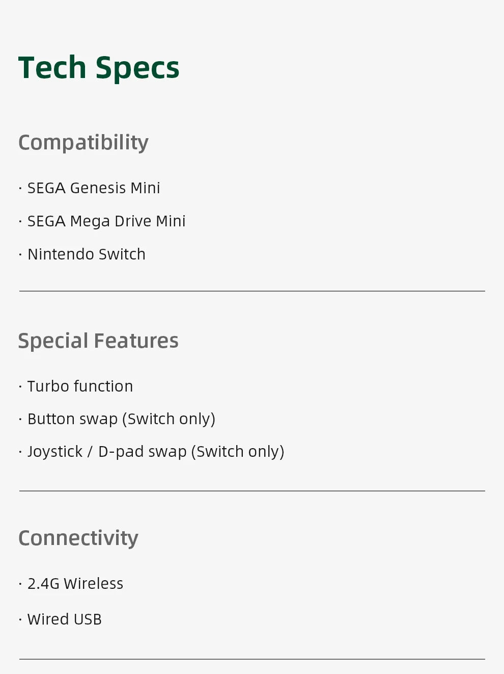 Режим контроллера 1 : беспроводная технология 2.4G для SEGA Genesis и Mega Drive
