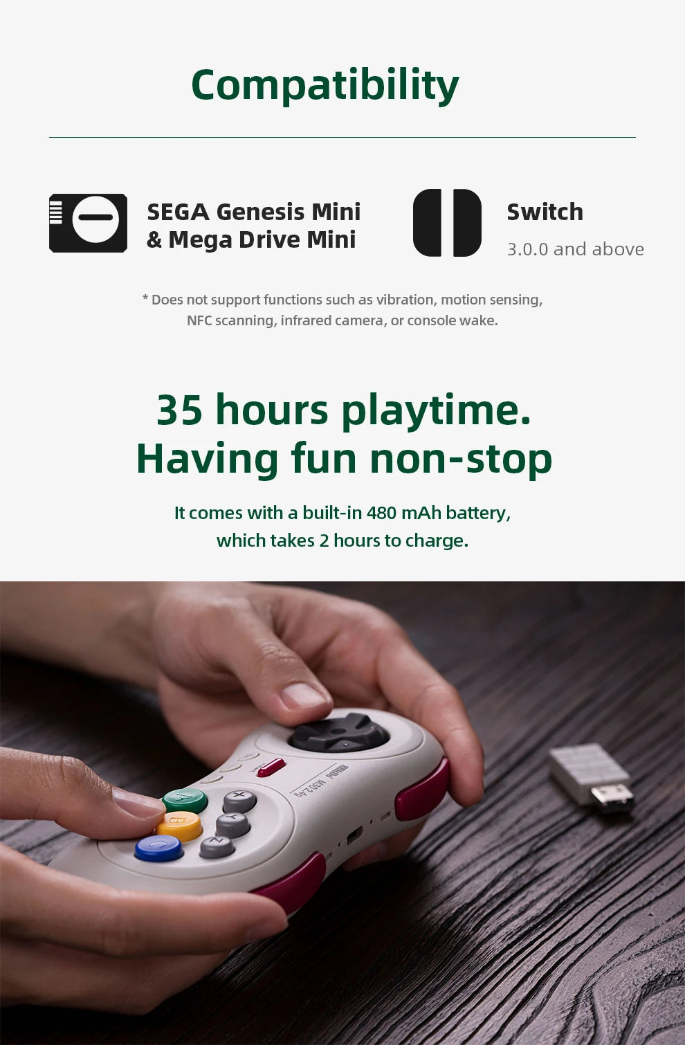 Беспроводной контроллер 8BitDo M30 2.4g для Sega Genesis Mini и Mega Drive