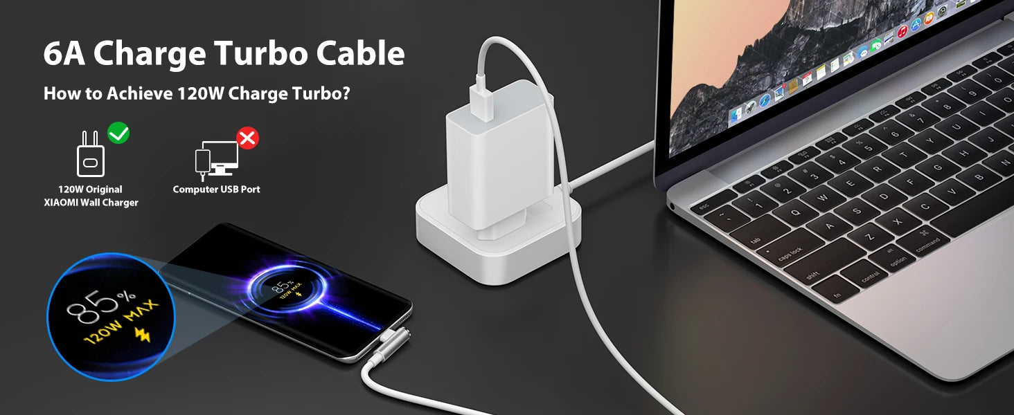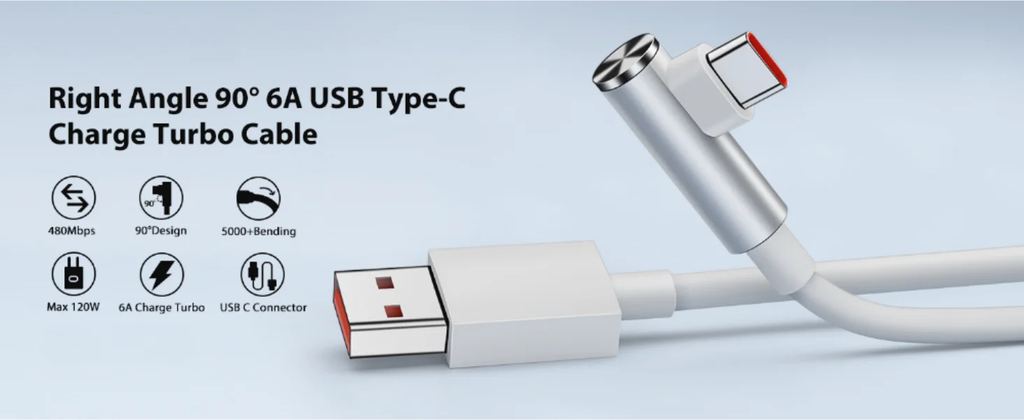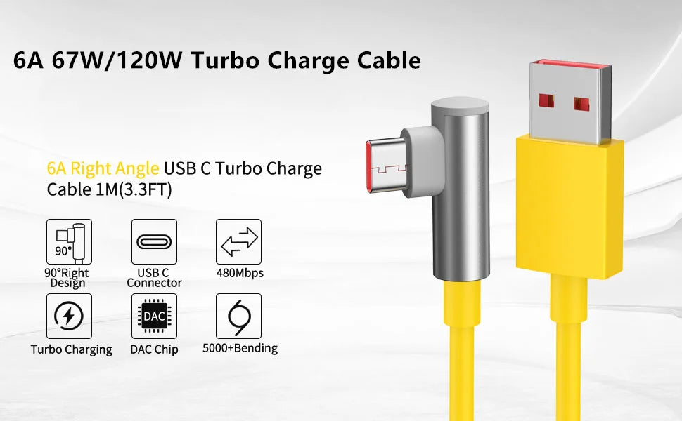 Угловой 90-градусный кабель 6A 67W/120W для быстрой зарядки типа C для Xiaomi 13, 14, 15 Ultra, Redmi Not...
