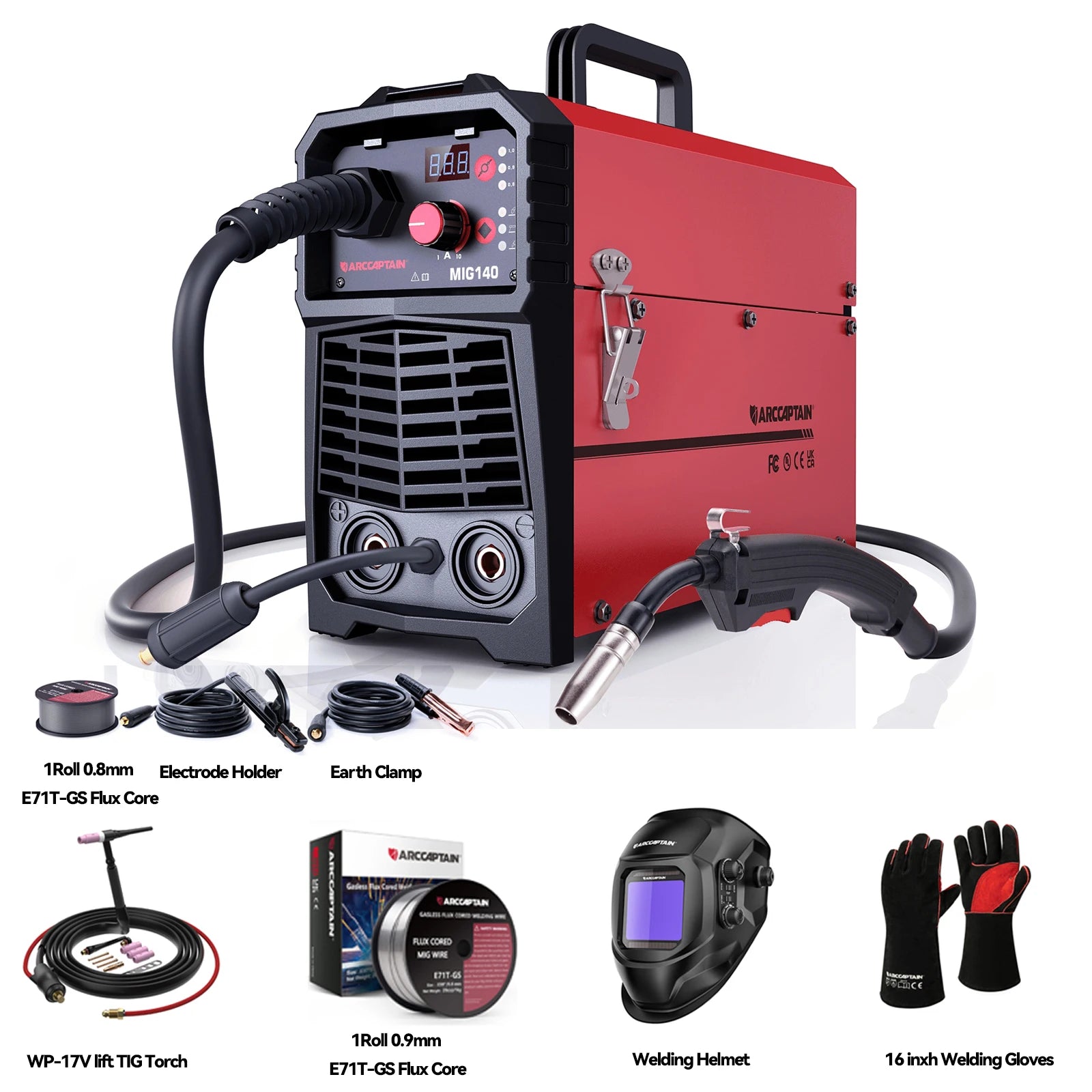 Сварочный аппарат ARCCAPTAIN 4 в 1 MIG MAG Gas TIG MMA IGBT инверторный полуавтоматический сварочный аппарат MIG 140 А 220 В с подъемной горелкой TIG