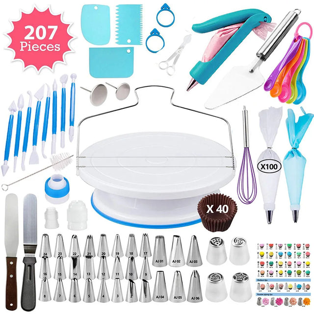 Набор принадлежностей для выпечки Насадки Насадки для кондитерских изделий Мешок для глазури Поворотный стол для торта Набор инструментов для украшения торта для больших и любителей тортов