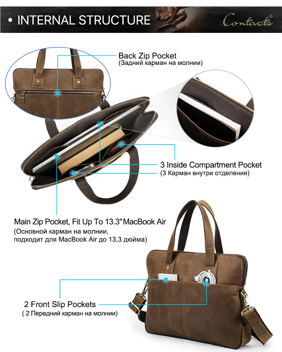 Свяжитесь с нами. Мужской кожаный портфель, винтажная сумка для ноутбука, пов...