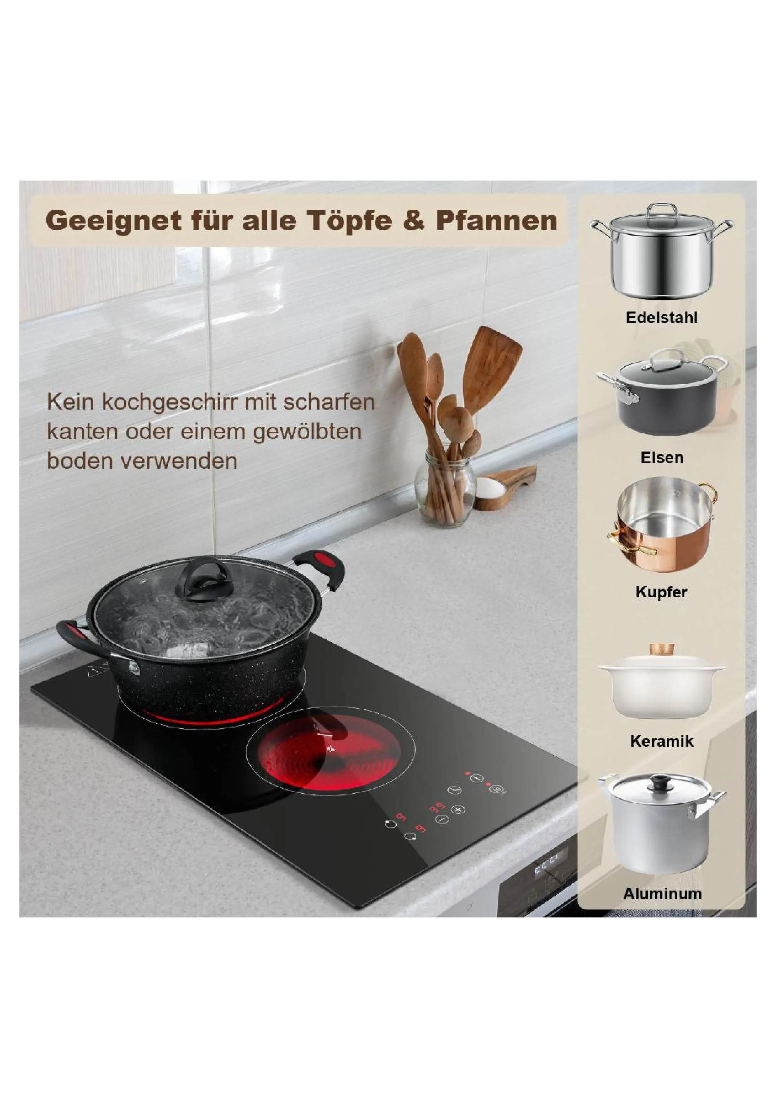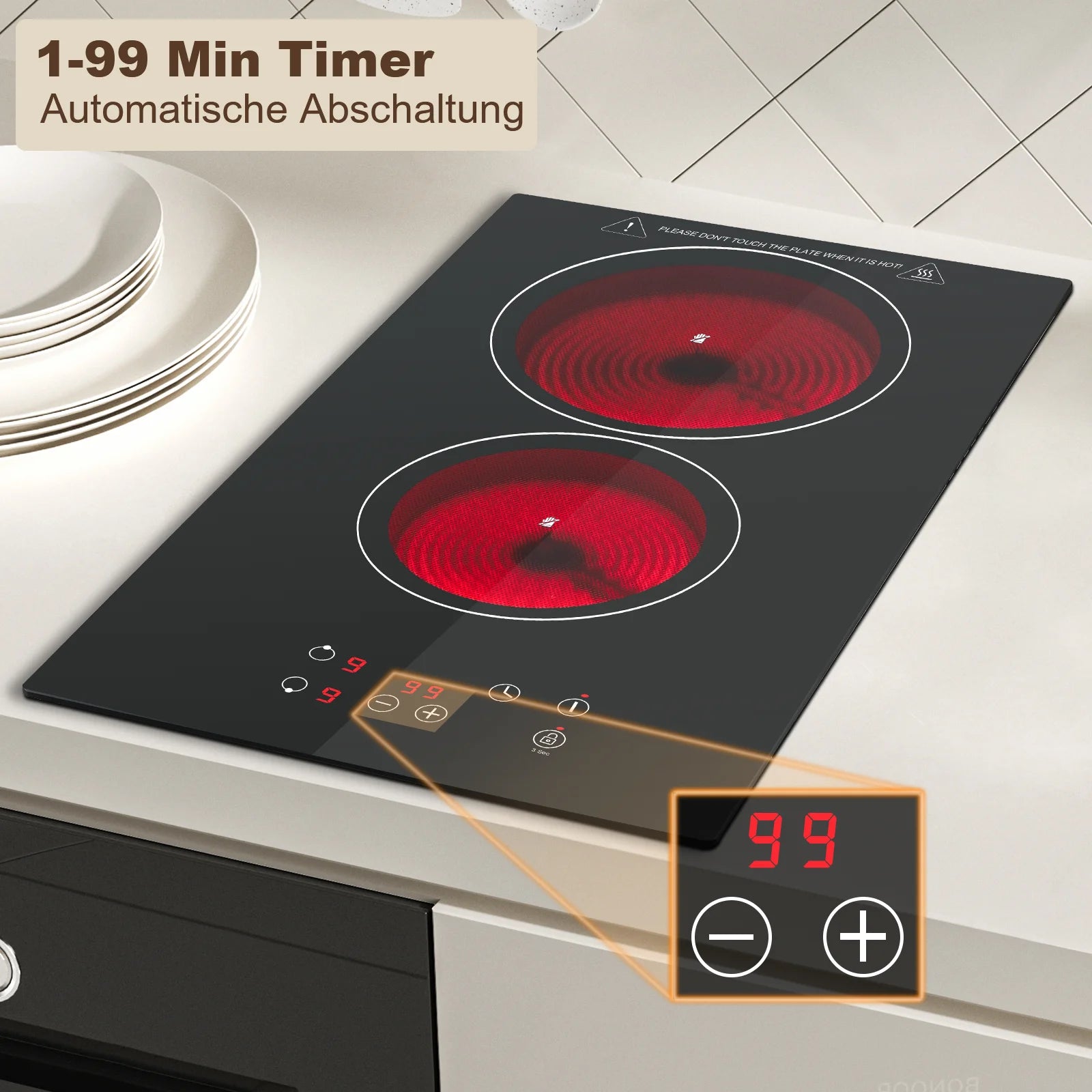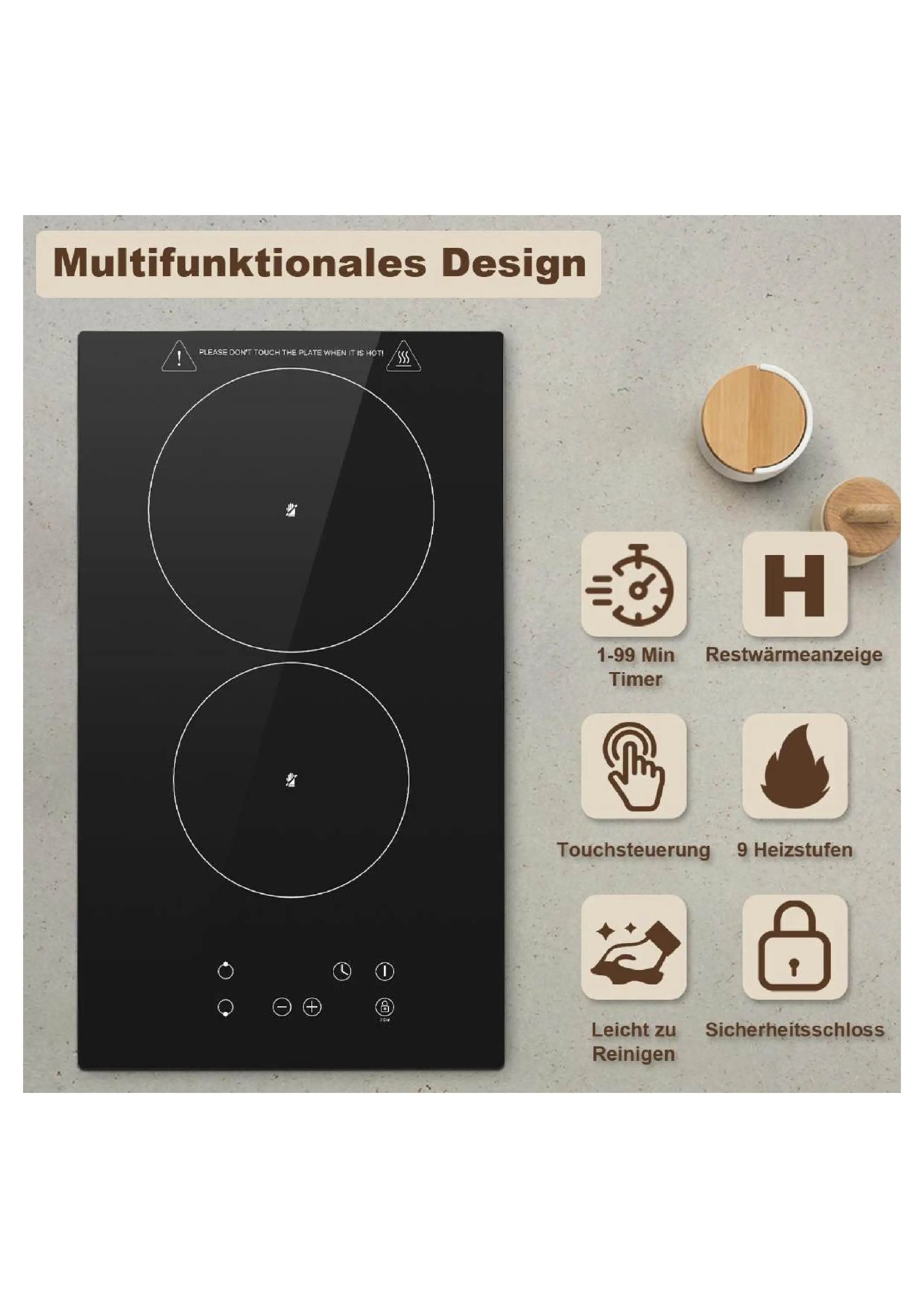 Kichpower 2 Plate with Plug Touch Control Glass Ceramic Hob
