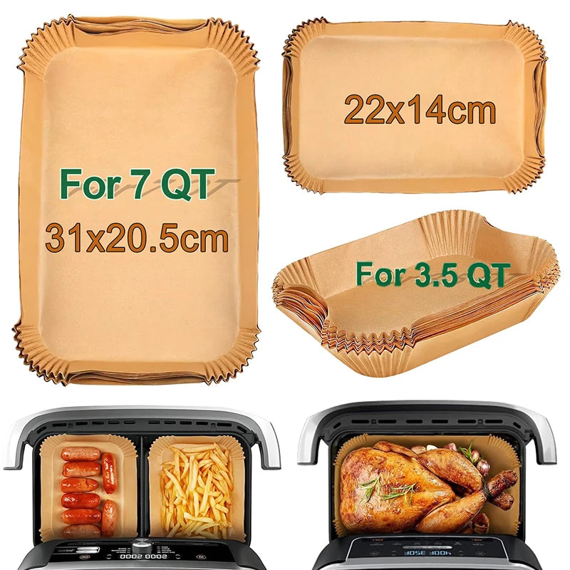 Прямоугольные бумажные вкладыши для фритюрницы Tefal 5.2L и 3.1L Dual Basket Airfryer Одноразовая бумага ...