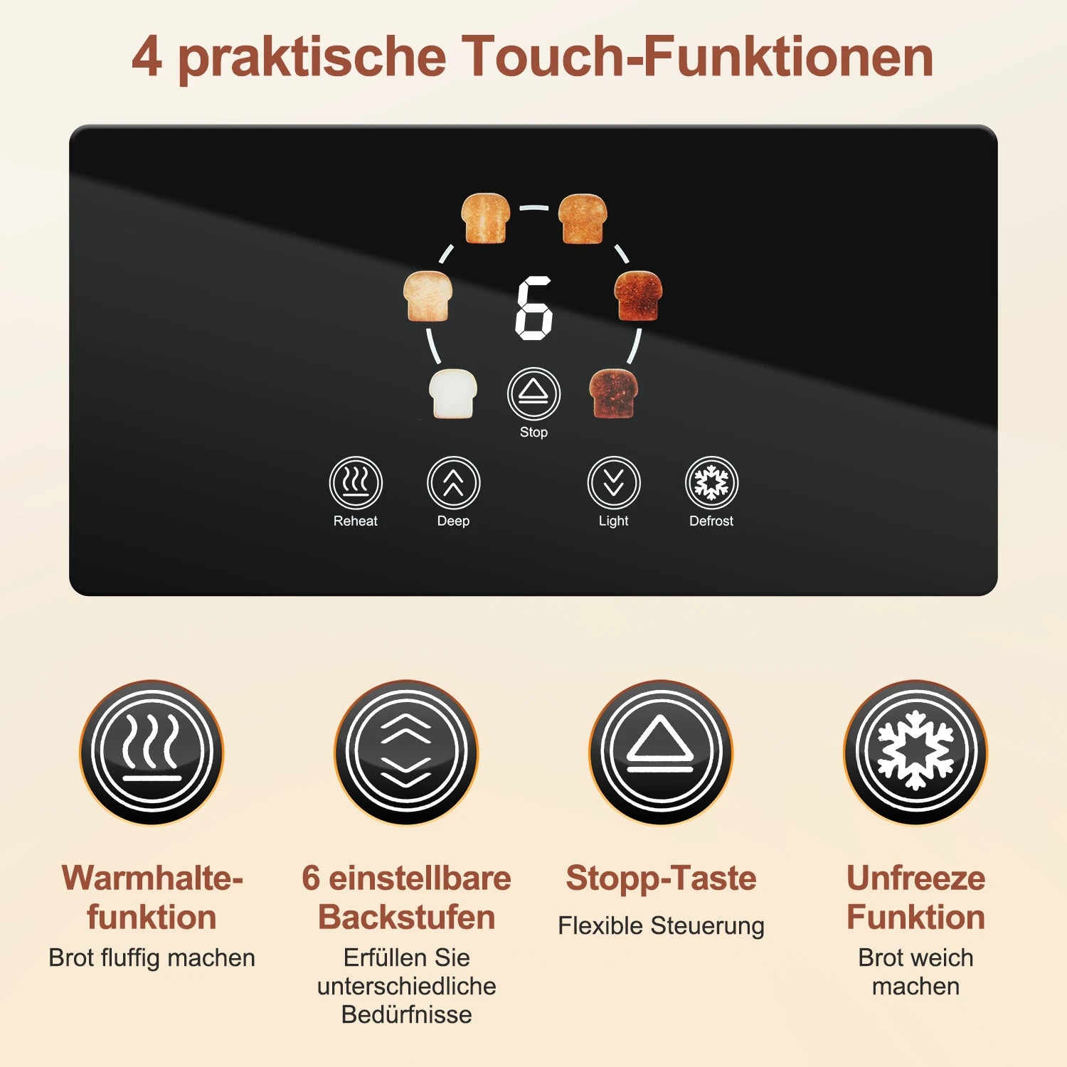 Toaster 1400w, stainless steel toaster, LCD touch display, 2 wide toast slots...