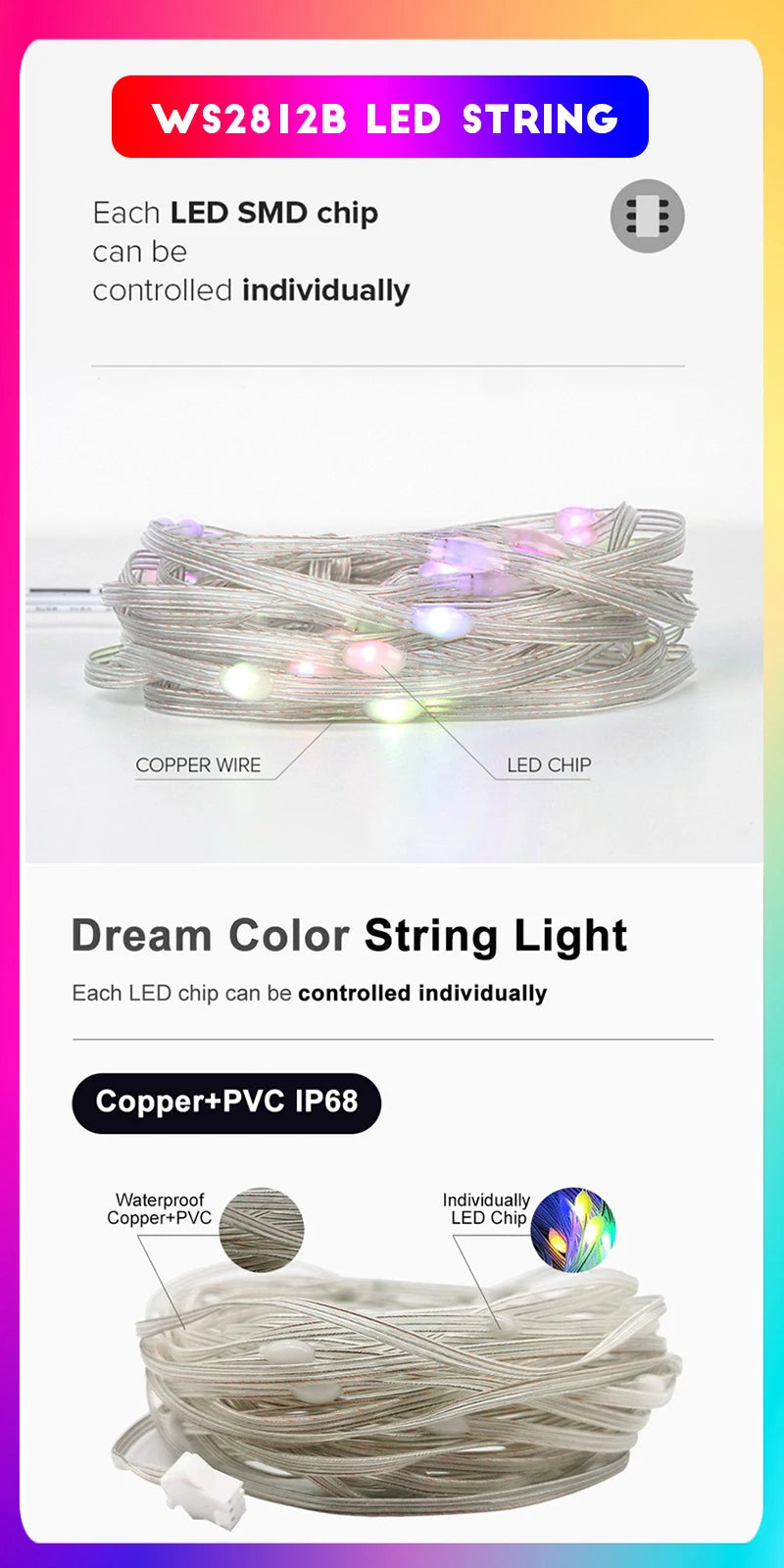 Tuya USB LED String Christmas Lights Ws2812b Rgbic Light Wifi Full Color Addr...